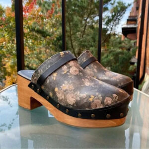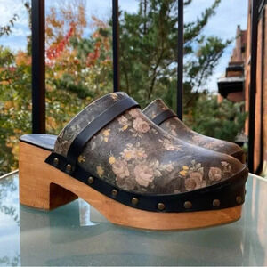 New Free People Calabasas Clog Wooden Floral Heeled Shoes