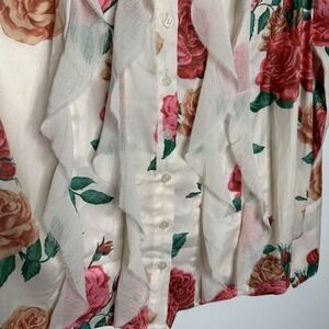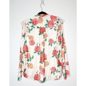 New Free People Floral Button Down Blouse Top Women's Pink Cream Size Small