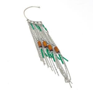 Features: Thin wire cuff, open design, dangling chain fringe, beaded details