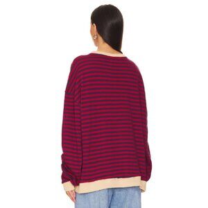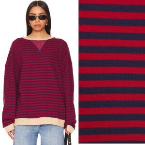 New! Free People Classic Red and Navy Striped Sweatshirt 2366
