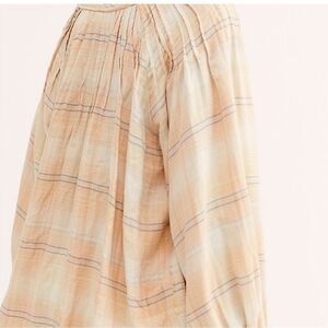 Free People Cloudbreaker Plaid Tunic Lace Up Ling Sleeves Tunic Top New Size XS
