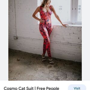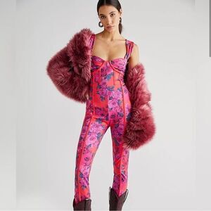 New Free People Cosmo Cat Suit Jumpsuit - Red Rose Combo size M Retail $198