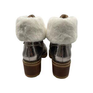 Step up your boot game with the Free People Cozy Jasper Hiker Ankle Boots, a modern take on classic hiking-inspired footwear. These boots are brand new without box and feature a metallic crinkled leather upper, fold-over shearling cuffs, and a platform sole with stacked block heel—combining rugged functionality with on-trend style.