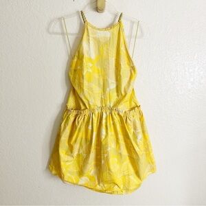 Effortlessly femme and eye-catching, this printed mini is featured in a crisp poplin fabrication and drop-waist silhouette with a bold open-back and gathered skirt detail.