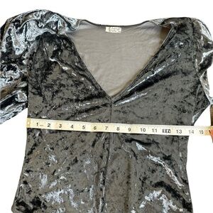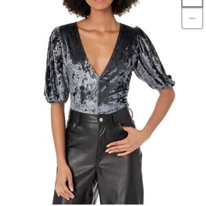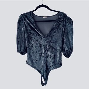 New Free People "Don't You Wish" Velour Thong Bodysuit with Puff Sleeves Size S