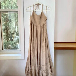 New Free People Extratropical Maxi Dress Summer Halter Boho Tier Long Taupe XS