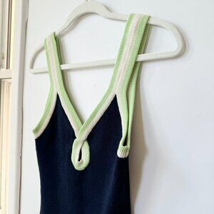 New Free People FP Beach Blair Sweater Knit Mini Dress White Navy Green XS