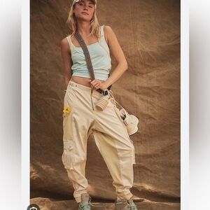 New Free People Fast Track Cargo Utility Pants Baggy Slouch FP Movement Cream