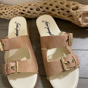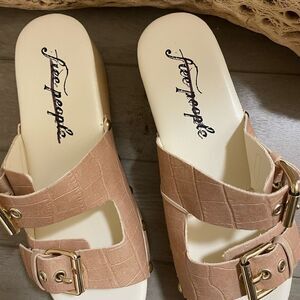 New Free People Fiona Cream Croc Buckle Stud Accent