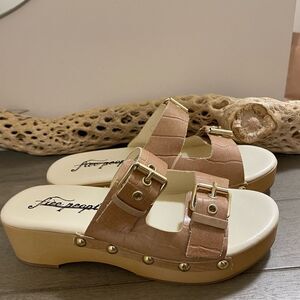 New Free People Fiona Cream CrocâBuckle WoodenâCushioned Clogs size 38 US