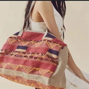 New Free People First Class Embellished Weekender Bag Adjustable Strap