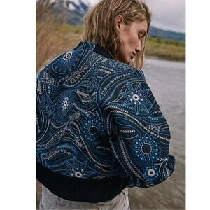 New Free People Garden Party Bomber Jacket FP MOVEMENT $298 SMALL Blue