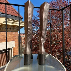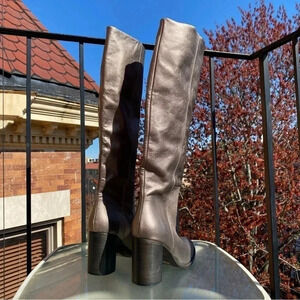 New Free People Grayson Tall Knee High Boots Leather Heeled Pewter Metallic