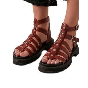 Bring the edge with these gladiator-inspired sandals, featuring strappy leather uppers with hammered stud details, sat on a lug sole for a major detail.