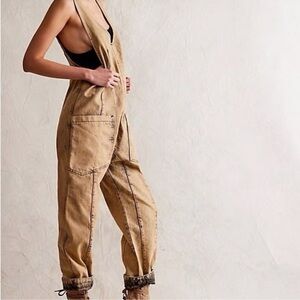 New Free People High Roller Jumpsuit Onesie One Piece We The Free Tan Blue Small
