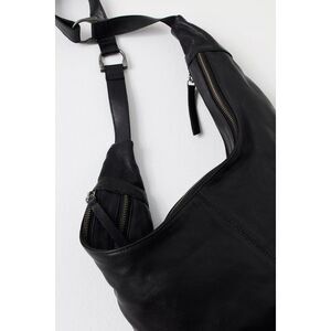 Effortless carrying in it's chicest form: this sling bag is featured in a supple leather and dramatic U-shape for a multi-wear number that can elevate any outfit.