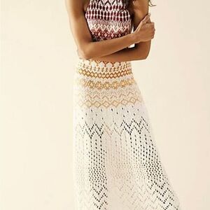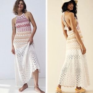 New Free People Ikat Oasis Maxi Dress Halter Crochet Knit buckles size S