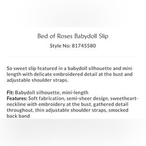 New Free People Intimately Bed Of Roses babydoll embroidered Slip Size XS