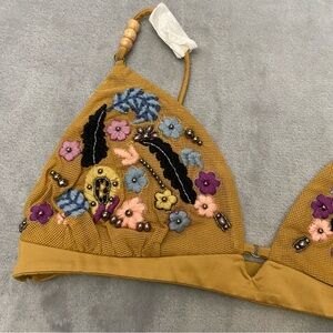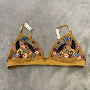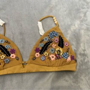 New! Free People Intimately Calla Embellished Triangle Bralette gold 4948
