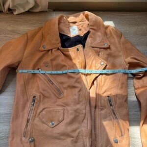 New Free People Jealousy Leather Moto Jacket We The Free Camel Brown Small