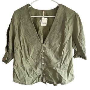 Delicate embroidery lends charm to the women's Laurie embroidered top from Free People, a timeless addition to any closet.