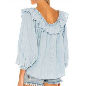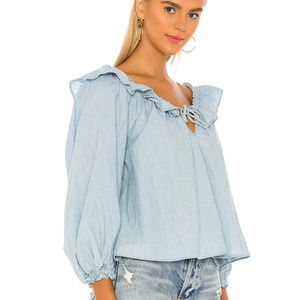 New Free People Lily of the Valley Chambray Ruffle Blouse