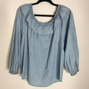 New Free People Lily of the Valley Chambray Ruffle Blouse Large