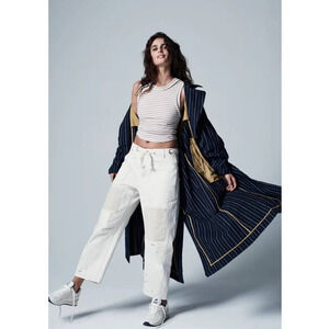 New Free People Melia Mac Trench Style Coat WTF $228 SMALL Blue Striped