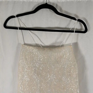 New Free People Mini Dress Women's Large White Sequin Sleeveless Spaghetti Strap