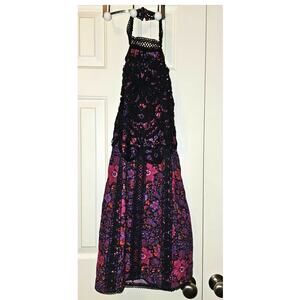New Free People Miss You Floral Mini Halter Dress $250 Size10 Purple Boho