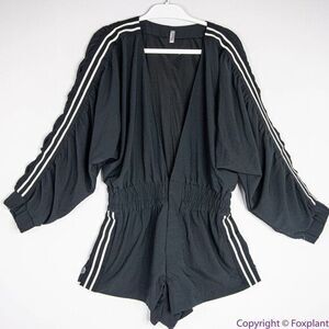 New Free People Movement Rory Romper Black Tracksuit Shorts Long Sleeves, M