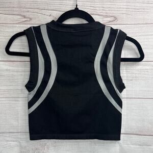 New Free People Movement Free Kick Crop Henley Black Muscle Tank Women's Size XS