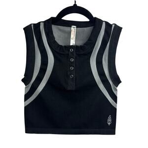 New Free People Movement Free Kick Crop Henley Black Muscle Tank Women's Size XS