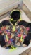 Free People Movement Happy Camper Pullover Jacket in black floral nylon with neon-yellow trim, adjustable cinch waist, and zip pockets. In a women’s size XS (pit to pit: 23 in, length: 22.5 in adjustable).