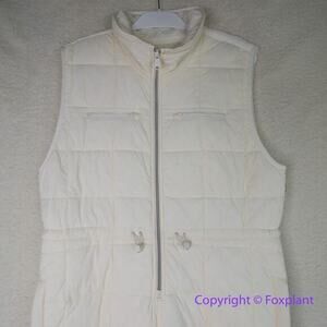 Your favorite packable puffer now in a winter-ready full-length suit. This quilted one-piece features a sleeveless silhouette and front-zip closure with adjustable bungee cords at the waist.