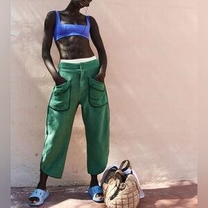 These Free People Movement pants are brand new with tags and in perfect condition in a size Large. This color way is sold out completely and is very sought after. It’s a very pretty green- vibrant hue! The color of these pants are exactly as the stock photo- see the last few photos also of the pants, will show true color.