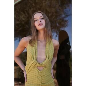 New Free People Nya Halter Maxi Dress FREE-EST $108 SMALL Green Cutout Detail