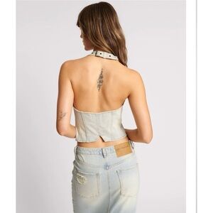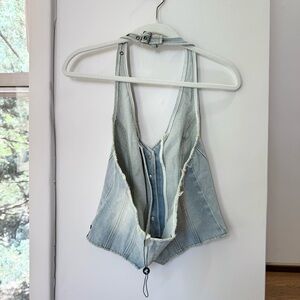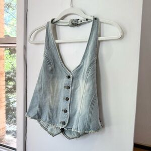 New Free People One Teaspoon Denim Halter Top Vest Jean Light Blue Medium
