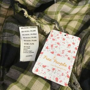 New Free People Pacific Dawn Plaid Shirt, Wool Blend, Loose Hem, Black Combo XS MSRP $118
