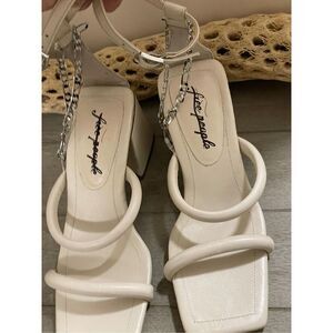 So minimal with a little something extra, these strappy heels feature an attached chain for a super sleek detail.