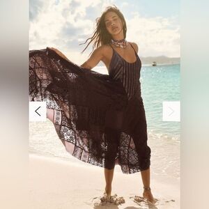 New Free People Party Aurella Black Maxi Dress Lace Patchwork size M