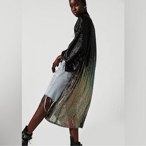 Have a moment in this head-turning sequin kimono featured in a fully embellished style to add some serious sparkle to any look.