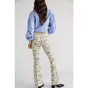 New Free People Penny Pull-On Printed Flare Jeans Size 31