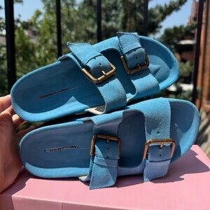 New Free People Rule Breaker Flatform Sandal Shoes Platform Suede Stud in Blue