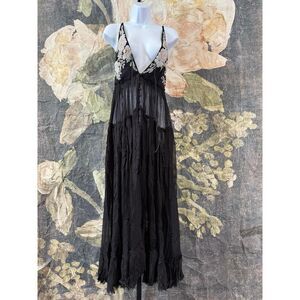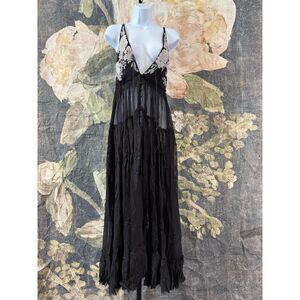 Forever femme with an ethereal edge, this timeless maxi top features a floral embroidered top piecing and sheer, tiered bottom for added versatility from season to season.