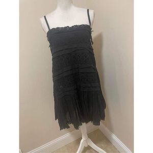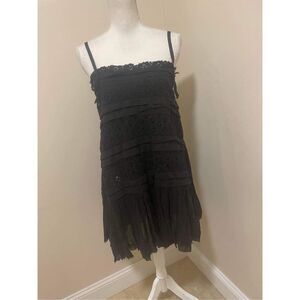 So sweet tiered mini slip featured in a flowy silhouette with crochet lace paneling and a gauzy ruffled skirt.