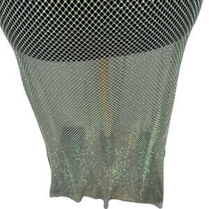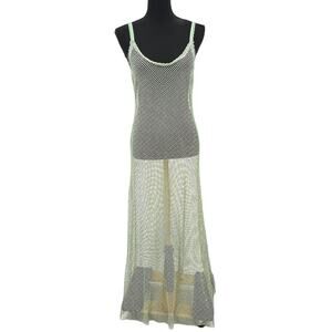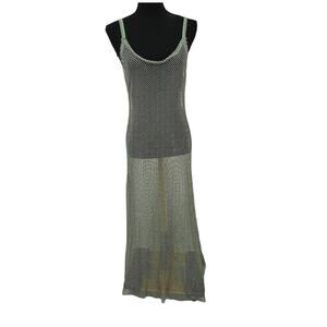 New Free People Sheer Open Weave Slip Maxi Dress Green Rhinestone Boho Beach
