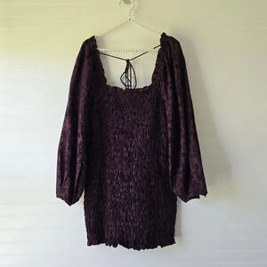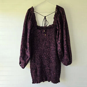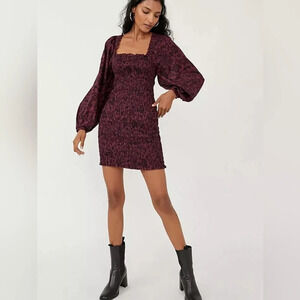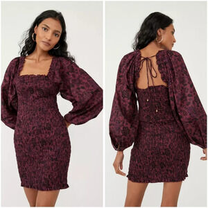 New Free People Smock It To Me Long Sleeve Mini Dress Medium Purple