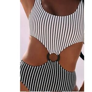New Free People Solid & Striped The Bailey One-Piece Swimsuit $188 MEDIUM Black