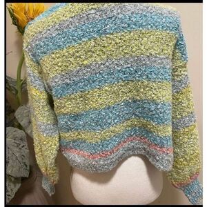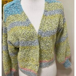 Add the perfect touch of texture to any look with this timeless cardigan featured in a classic button-front silhouette with stripe detailing and slightly exaggerated sleeves for shape.